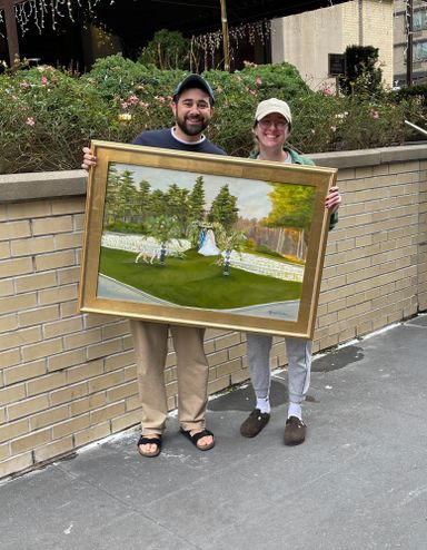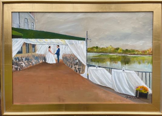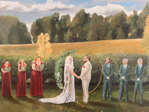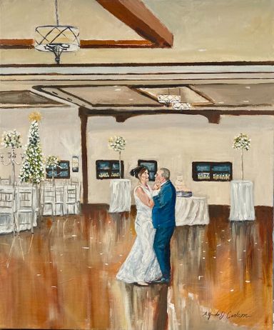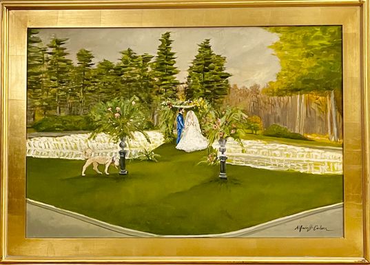 It’s a fun experience for the guests, and I love chatting with them about the process. I often paint the ceremony, first dance, or first look in the landscape, but I want to work with whatever your vision is for your painting.