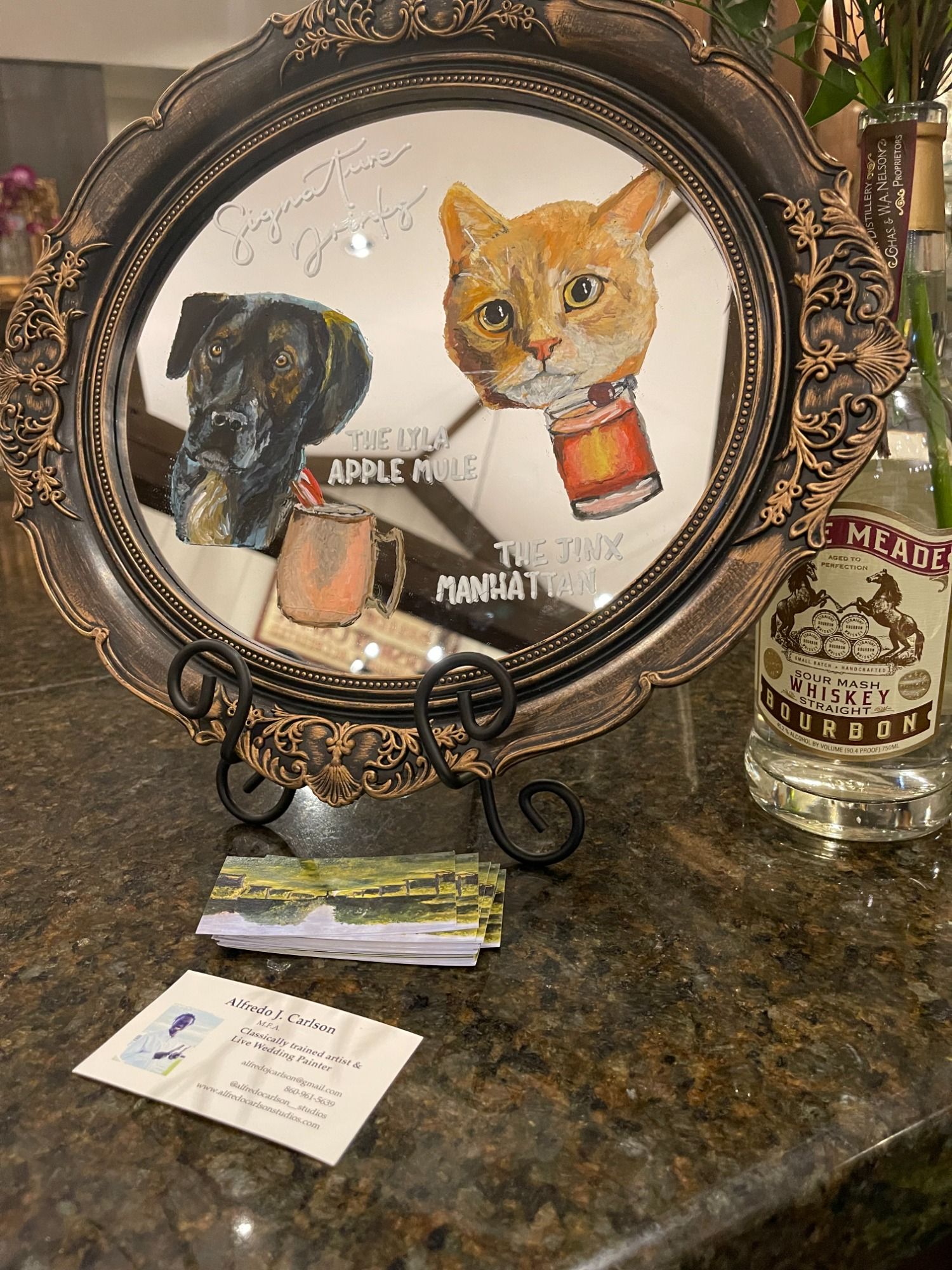 Special package - 9x12 painting of your pet, wedding venue, or other meaningful moment, painted in advance and printed on 100 3x3 guest stickers, $750