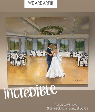 I start with a blank canvas at cocktail hour, and present the couple with a finished painting at the end of the evening!